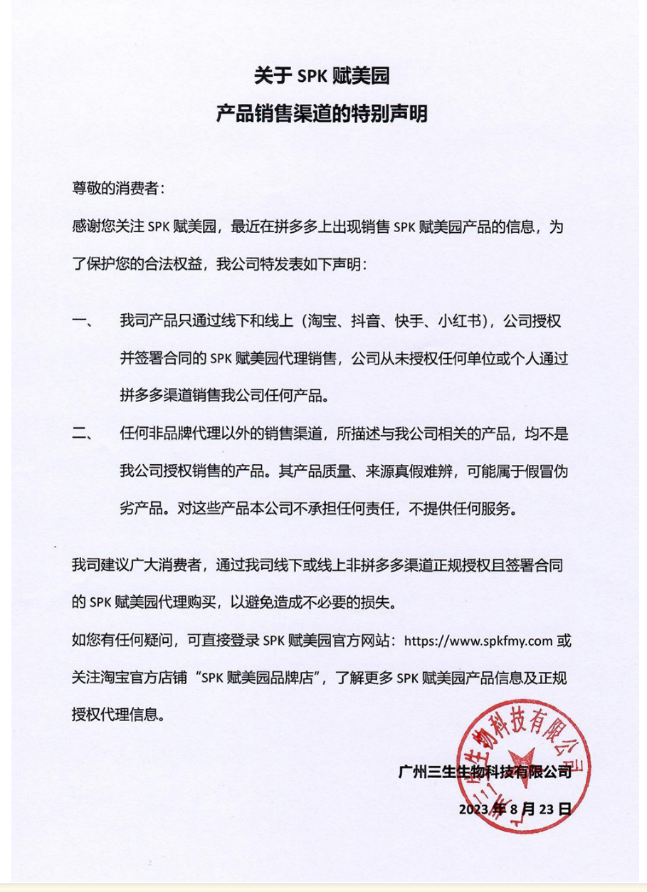 SPK賦美園,三生生物科技有限公司旗下產(chǎn)品,2001年創(chuàng)于廣州。以自然和諧的醫(yī)學(xué)美容理念為基礎(chǔ),結(jié)合大自然芳香SPA療法,針對(duì)中國(guó)人皮膚特點(diǎn)研制,配以純天然植物成分并融合植物仿生等高科技,向中國(guó)女性詮釋“天賦平衡,美麗無(wú)限”的美容真諦,致力于為中國(guó)消費(fèi)者提供更好更專(zhuān)業(yè)的護(hù)膚產(chǎn)品和服務(wù)。SPK字母組合的含義:SP—SPA,代表水療;K—健康,SPK組合寓義:以水為媒,賦予女性健康和美麗。